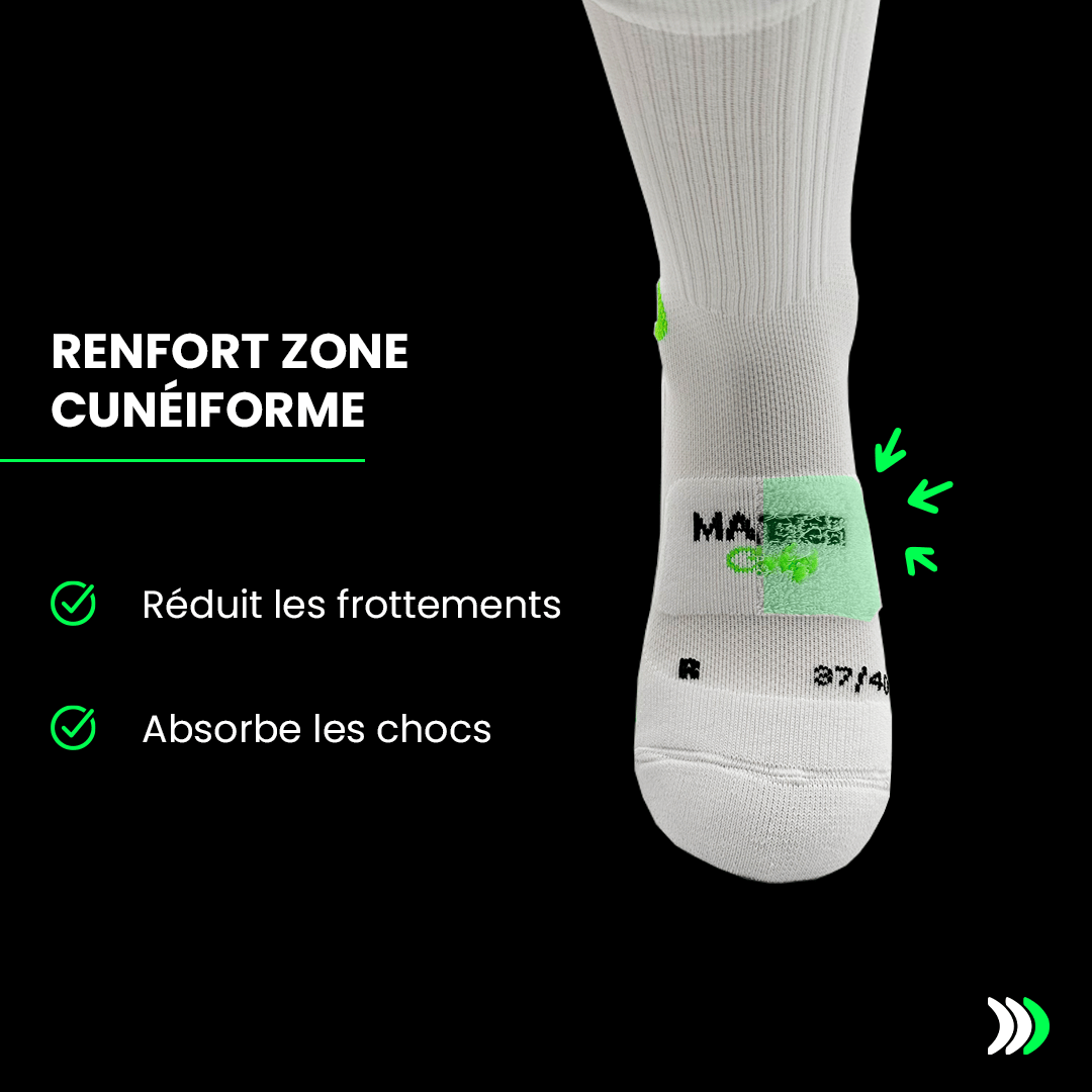 Voici une comparaison de nos deux modèles de chaussettes de performance. Parfaitement complémentaires, chacun est conçu pour répondre à un besoin différent.