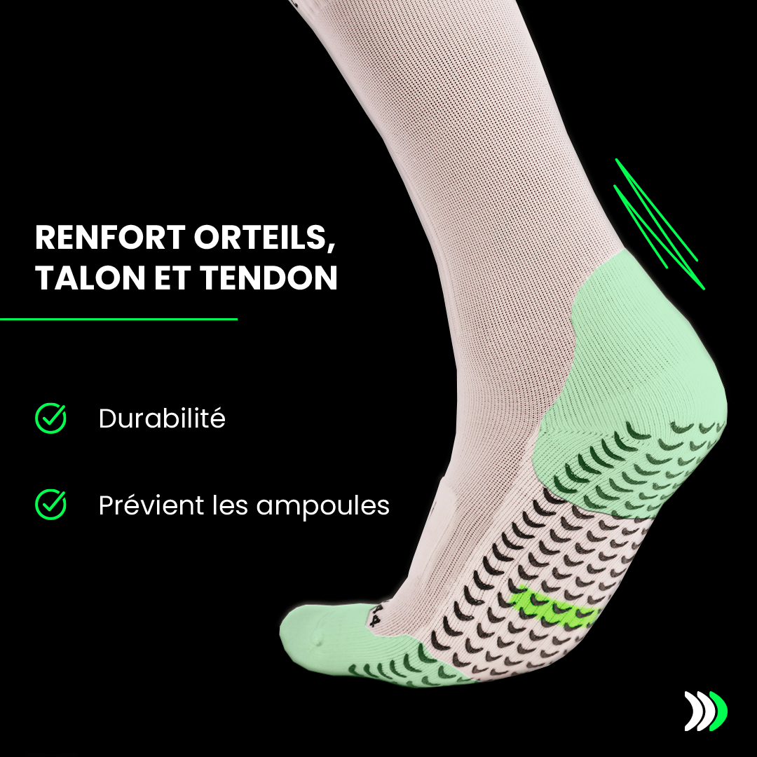 Grâce à leur grip interne + externe et à leurs zones de renfort, elles vous permettent de rester stable dans les phases les plus explosives du match.